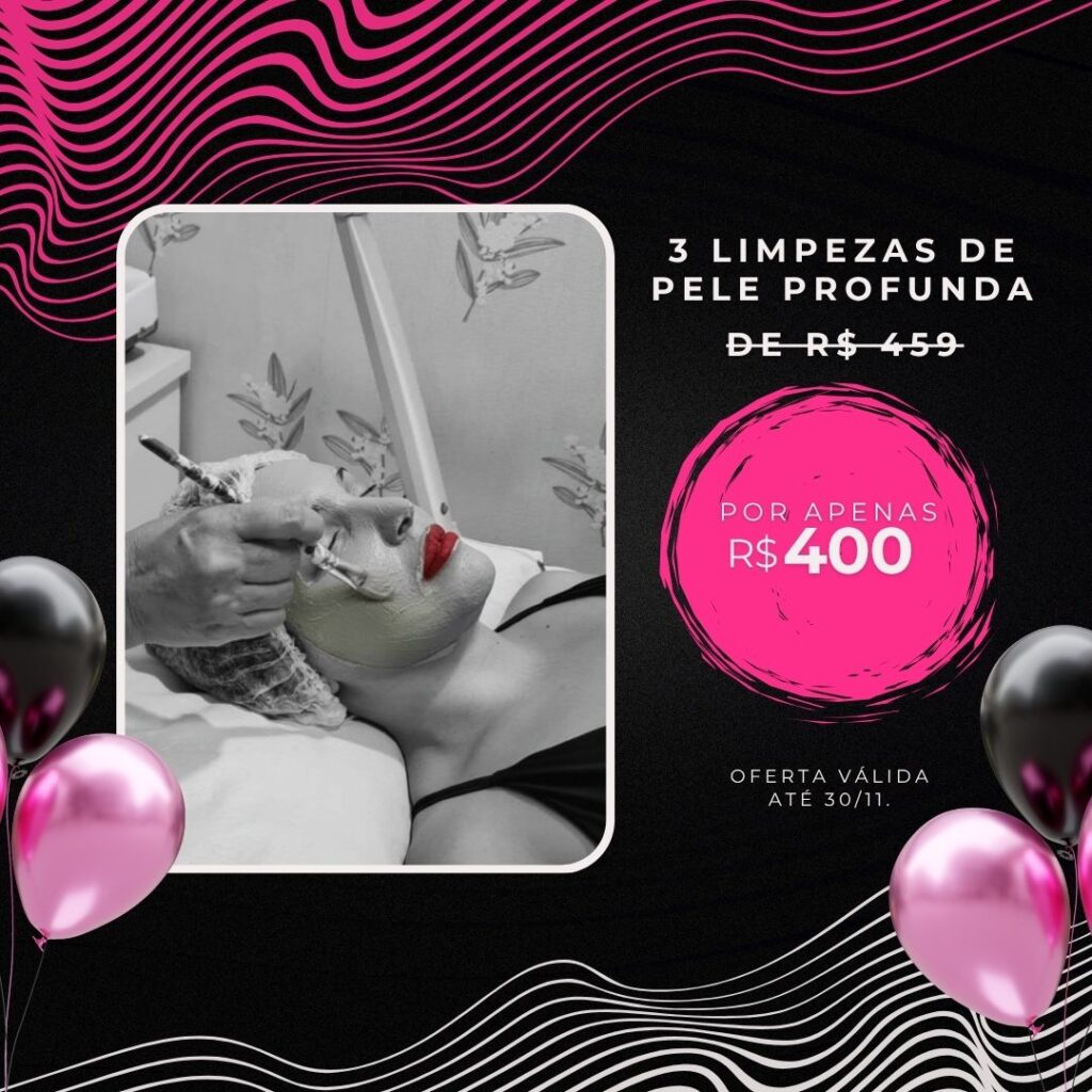 Um dos destaques desta Black Friday é o pacote com 3 limpezas de pele profunda, que normalmente custaria R$459, mas durante a campanha está por R$400. Esse é um dos tratamentos mais procurados do Studio, porque remove impurezas, desobstrui poros, reduz oleosidade e traz de volta o viço natural da pele. Quando realizado de forma contínua, potencializa qualquer outro procedimento: hidratantes agem melhor, ácidos penetram de forma mais eficaz e a textura da pele melhora de maneira significativa.